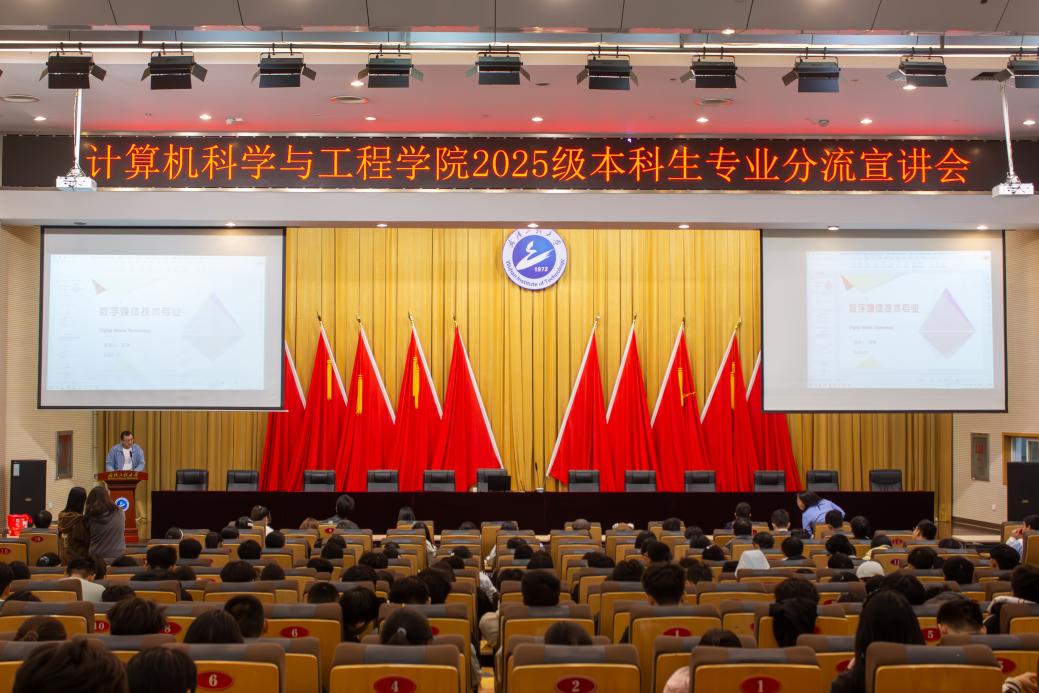 本网讯(通讯员 张铭轩)为帮助2025级计算机新生对各专业的认识,合理选择和规划未来专业发展方向,11月6日下午计算机科学与工程学院(人工智能学院)在四教多功能报告厅召开了2025级计算机类本科生专业分流宣讲会。数字媒体技术教研室主任吴静、物联网工程教研室副主任李洪利、智能科学与技术教研室教师龚芳、网络空间安全教研室教师李昕煜、软件工程教研室教师吕涛和计算机科学与技术教研室教师赵苑珺参加会议,会议由2025级本科生辅导员张铭轩主持。