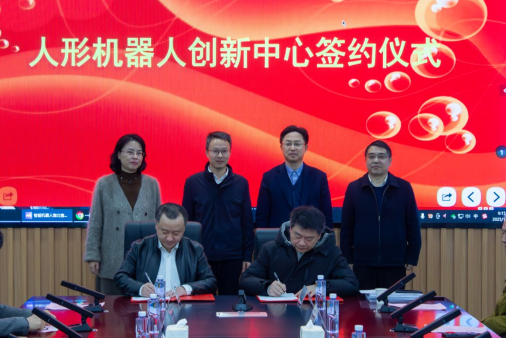 武汉工程大学与湖北人形机器人创新中心举行战略合作签约仪式。双方单位负责人徐华昕、刘传厚上台签署协议,张彦铎校长、姚槐应校长、李正祥董事长、夏文华院长共同鉴签,标志着校企合作迈入新阶段。