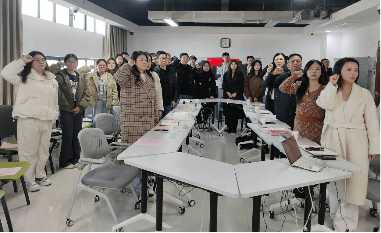 活动伊始,陈贝带领全体与会党员重温入党誓词。创业学院副院长艾靓致欢迎辞,围绕“党建与创新创业深度融合”主题,详细介绍了学院在组织建设、品牌打造、育人机制创新等方面的经验做法,重点分享了师生党员带头参与项目孵化、赛事指导、资源对接的实践案例和具体路径。李琪娜结合工作实际,围绕培养学生创新精神、实践能力以及竞赛方面的探索与成效进行分享。双方就党建经验互鉴、双创资源共享、跨校项目合作、青年人才联合培养等议题展开深入探讨,达成共识。