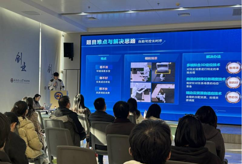 座谈会后,项目路演交流环节精彩上演。两校学生轮流上台,展示了涵盖科技创新、文化创意、心理健康等多个领域的创业项目。评审团从项目创新性、市场潜力、可行性等方面进行专业点评,针对商业模式优化、核心竞争力提升等关键问题提出针对性建议。路演结束后,在武汉理工大学创业学院教师引导下,我院师生共同参观了陶瓷艺术梦工场、新能源汽车梦工场、孵化空间以及技术研发实验室。参观过程中,我院学生党员主动交流请教,围绕项目选题方向、资源整合渠道、政策支持获取等问题展开热烈讨论,有效拓宽了创新创业视野。