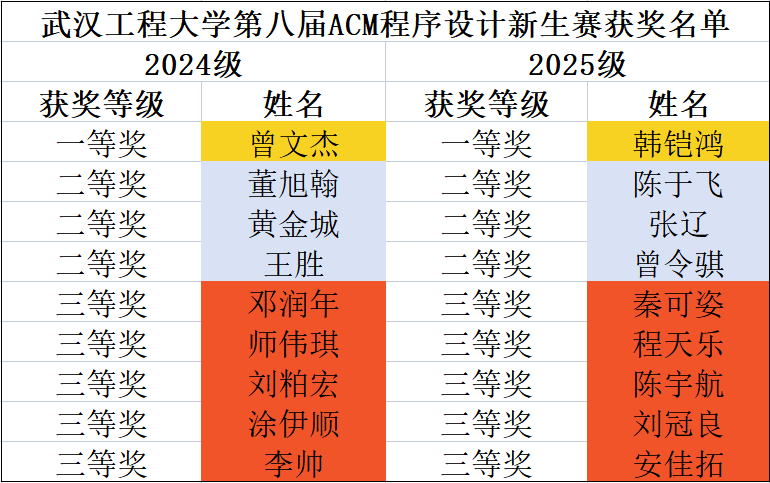 本次比赛参赛选手来自我校各学院2024、2025级的93名本科生和清华大学、西南电子科技大学、南开大学、集美大学、武汉大学(武汉)等高校的268名本科生(校外参赛选手参加线上同步赛,不设奖项)。最终根据竞赛规则,从校内参赛选手中评出一等奖2人,二等奖6人,三等奖10人,获奖名单公布如下: