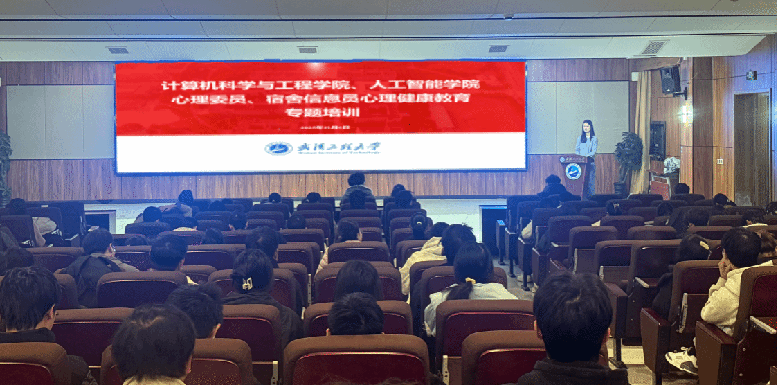 本网讯(通讯员 韩笑)为切实加强学院心理健康教育工作队伍建设,夯实朋辈心理支持基础,11月6日,计算机学院在图灵报告厅举办心理委员与宿舍信息员专题培训。本次培训由学院心理专干韩笑主持,各班级心理委员、宿舍信息员参加培训。