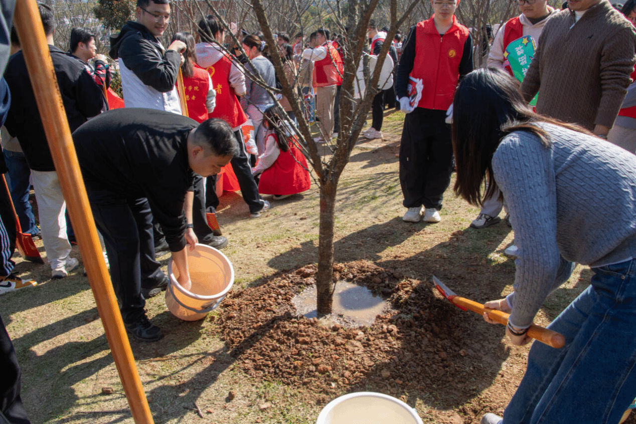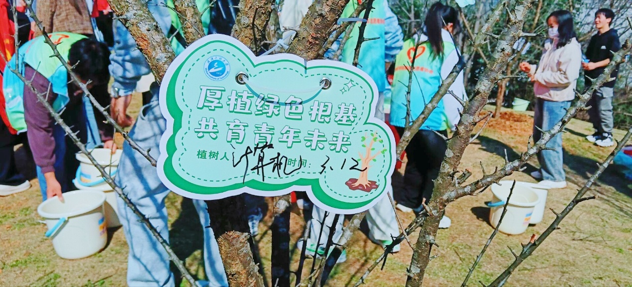 在后勤保障处专业技术人员的指导下,全体参与人员分组协作、规范作业,严格按照植树流程完成挥锹挖坑、扶苗培土、浇水定根等工序,高效有序完成既定栽种任务。活动现场延续“树苗挂牌”特色环节,师生为新栽苗木悬挂专属标识牌,将绿色发展理念与青年成长期许融入每一株新绿之中。参与学生表示,通过完整参与植树实践,深刻体会到“厚植根基”与“深耕成长”的内在关联,劳动过程中培养的耐心与细致,将转化为专业学习与人生发展的坚实动力。