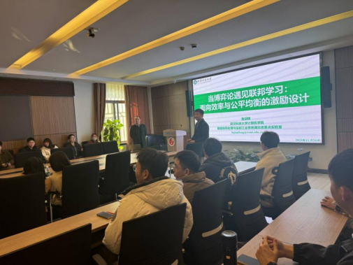 在互动环节,鲁剑锋教授就博弈论与联邦学习结合的技术细节、激励设计的实际应用等热点问题与师生展开热烈讨论,并分享了在该领域的研究经验。师生们对于鲁剑锋教授在博弈论与联邦学习交叉领域的研究成果表示高度关注,并以此次讲座为契机,进一步加强深化交流。